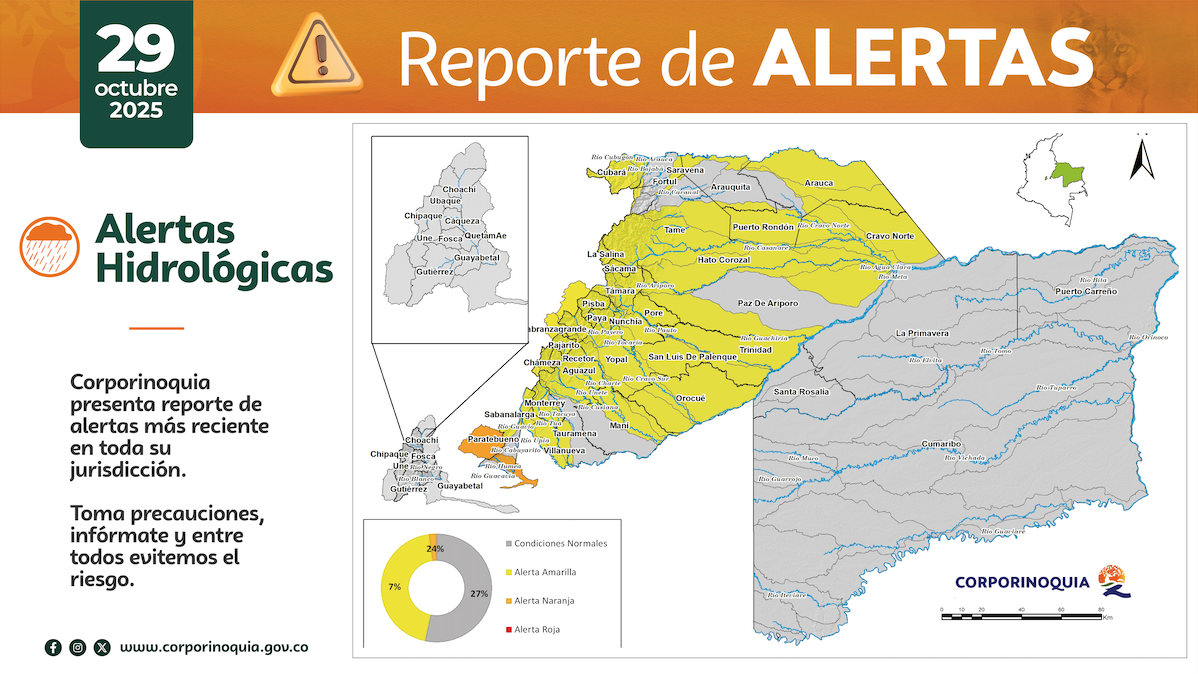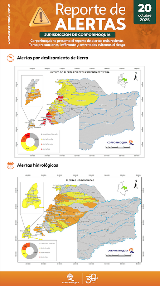 - Atención Corporinoquia actualiza reporte de alertas por temporada de lluvias en la Orinoquía
