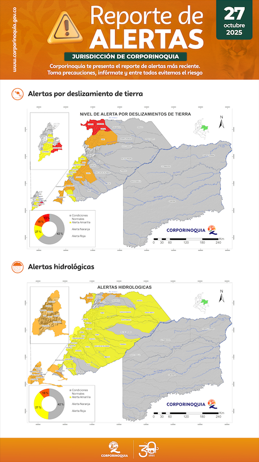 - Corporinoquia presenta reporte de alertas por deslizamientos de tierra e incremento en niveles hídricos