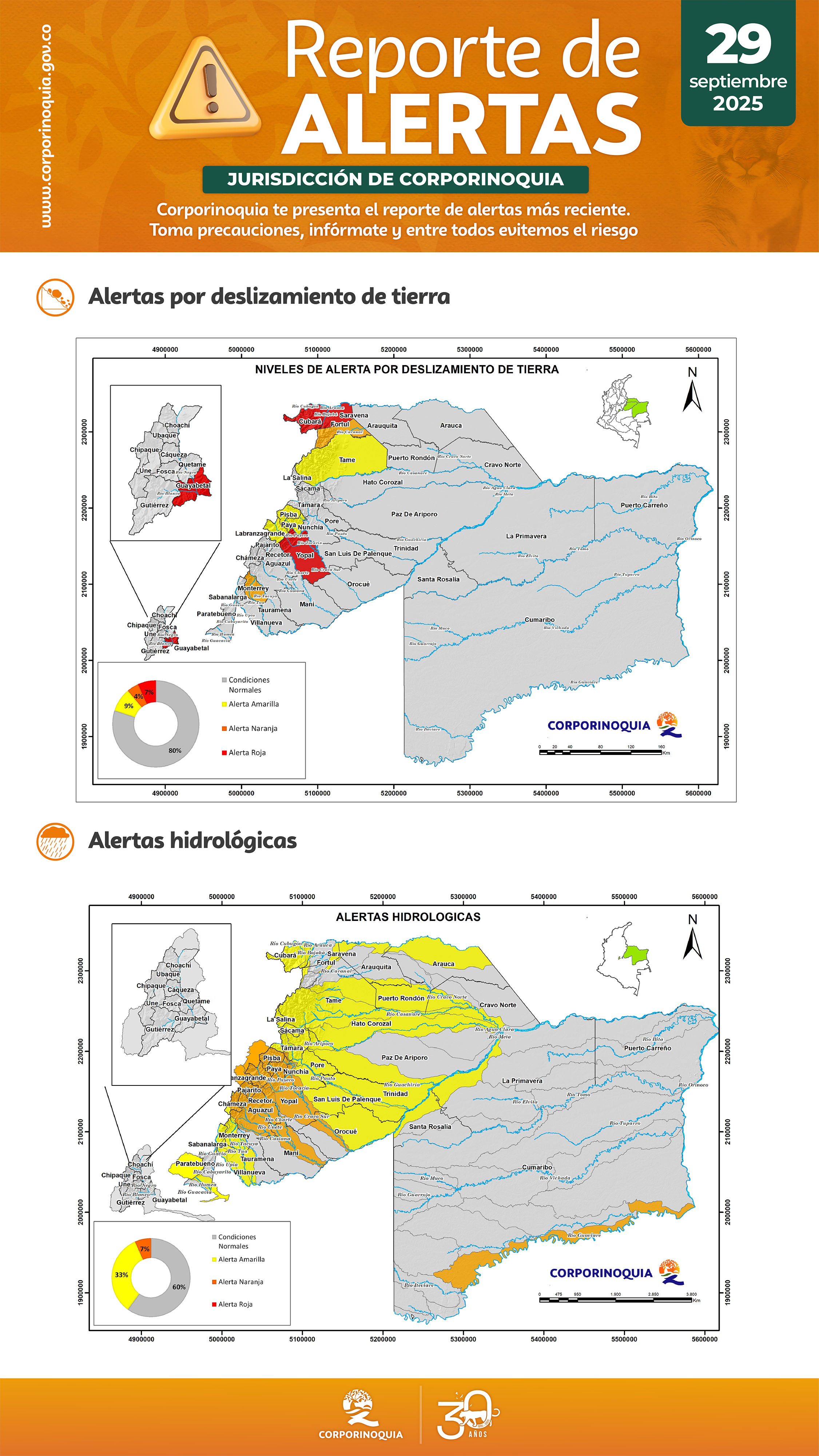 - Nuevo reporte de alertas por temporada de lluvias en la jurisdicción de Corporinoquia