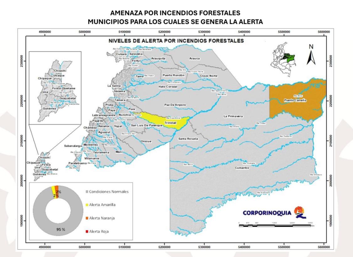 Ante la temporada de menos lluvias, se mantiene alerta por posibles incendios forestales en municipios como Puerto Carreño (Vichada) y Trinidad (Casanare).