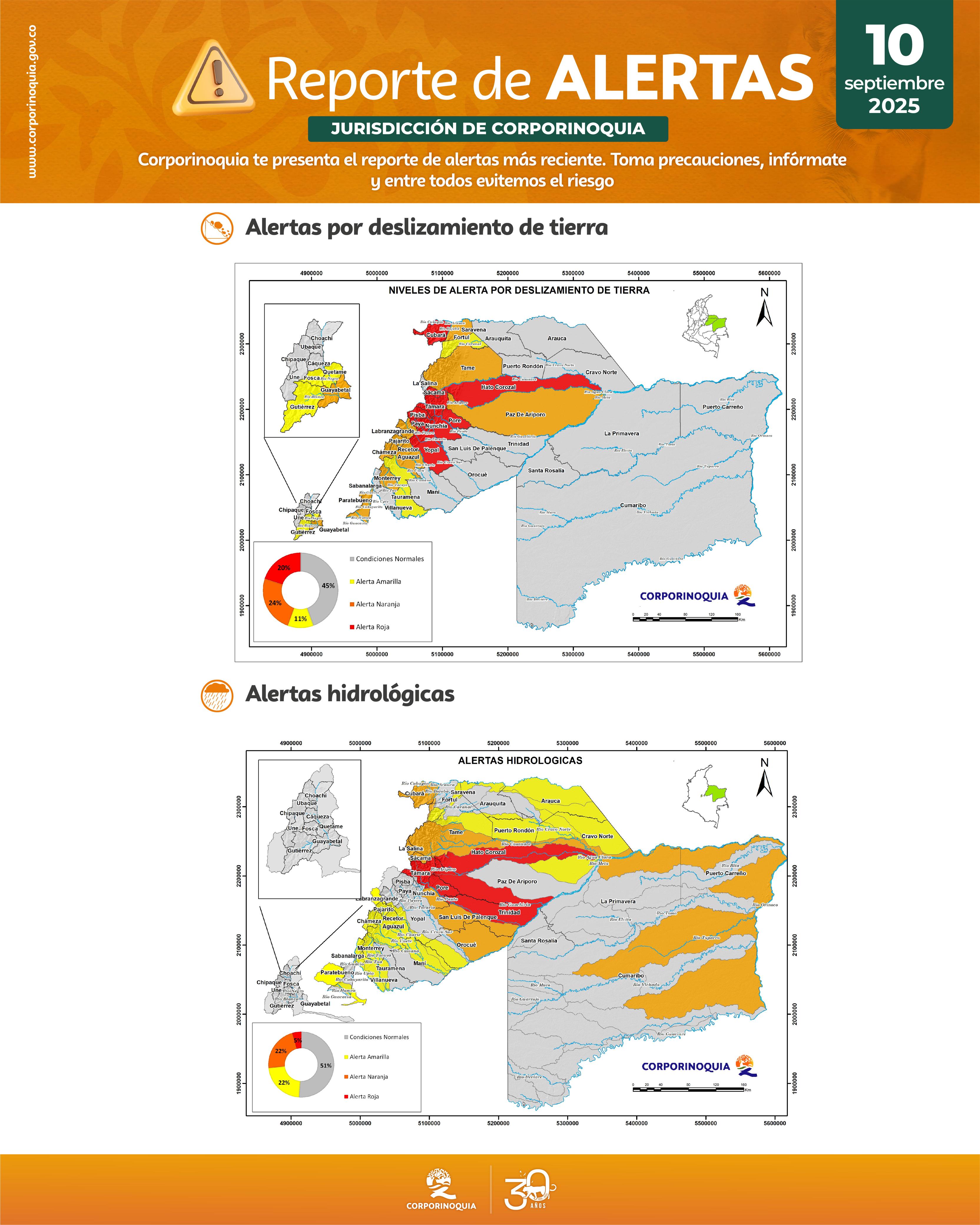 Boletín de alertas Corporinoquia socializa alertas por deslizamientos de tierra y eventos hidrológicos en su jurisdicción